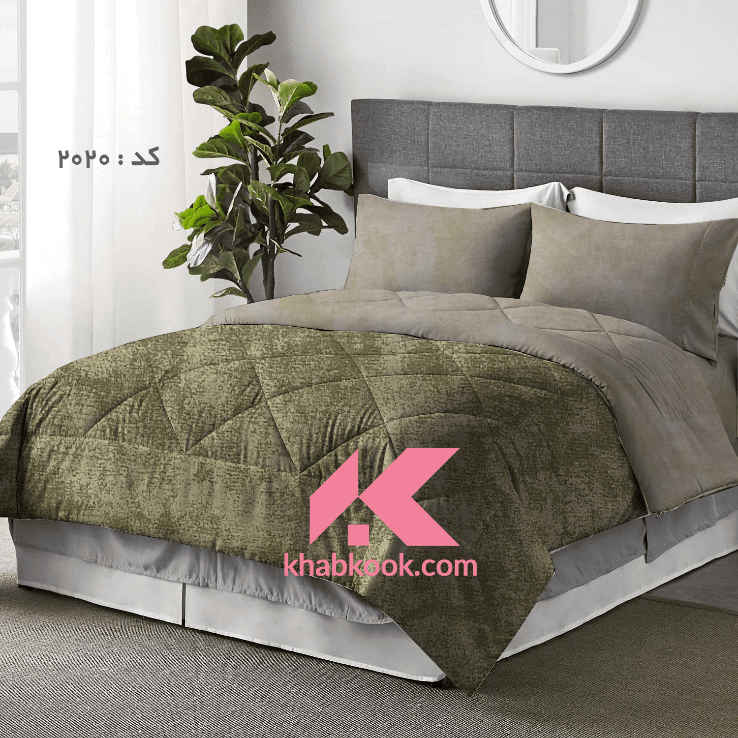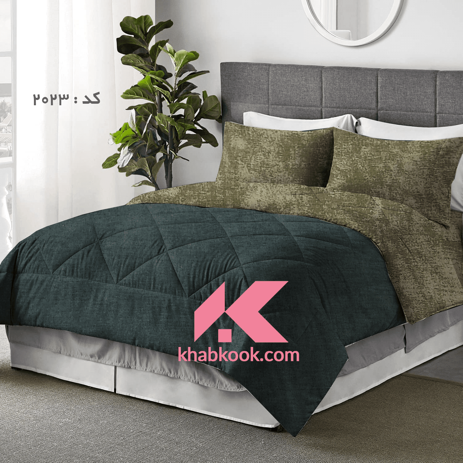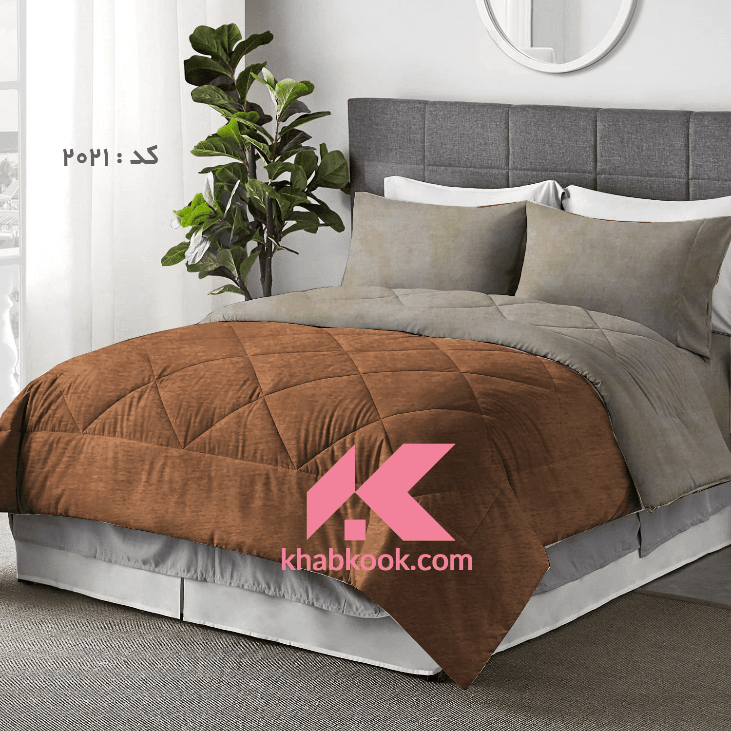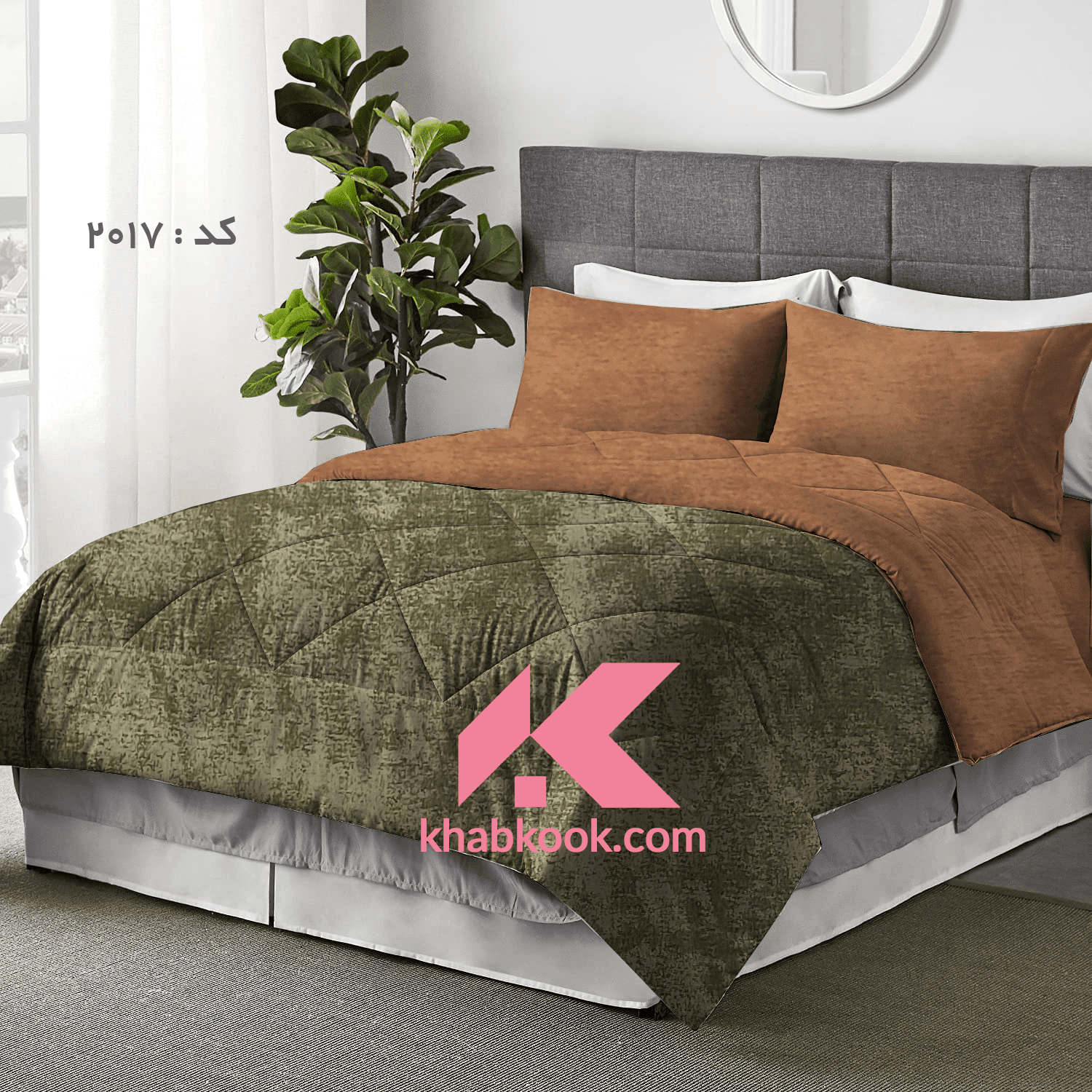این سرویس روتختی دونفره دارای لحاف دو رنگ میباشد، به این صورت که الیاف توسط دستگاه مجهز CNC به کاور پوششدهنده دوخته میشه و قابل جداشدن نیست.